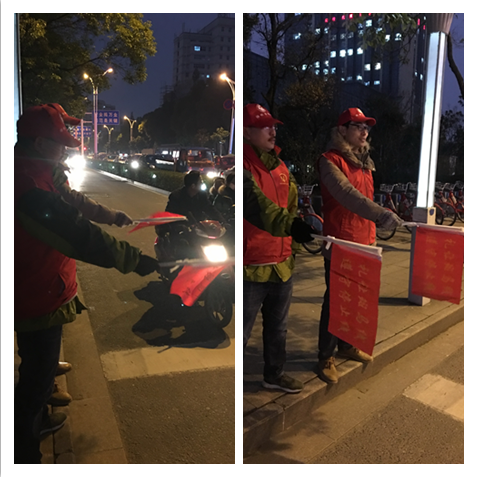 為進(jìn)一步弘揚(yáng)志愿服務(wù)精神,11月22日~30日,北辰公司積極響應(yīng)揚(yáng)州市文明委號(hào)召,組織公司春雨行動(dòng)志愿者服務(wù)隊(duì)走上街頭開展了文明交通勸導(dǎo)志愿服務(wù)行動(dòng),具體負(fù)責(zé)商城崗的文明交通勸導(dǎo)工作。