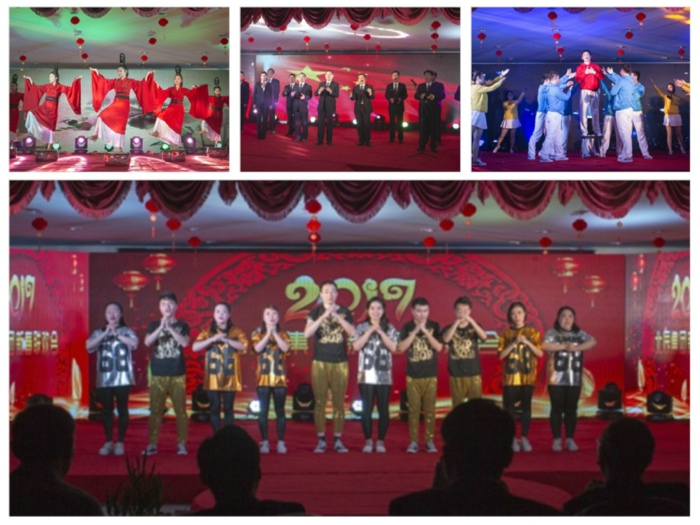 整個職工迎新春聯(lián)歡會氣氛活躍,12個節(jié)目均為職工自編自演,公司領(lǐng)導班子也參與其中。絢麗的舞臺異彩紛呈、變幻的光影美輪美奐、曼妙的舞步優(yōu)雅柔美、悠揚的歌聲振奮人心。充滿朝氣的《中國龍鼓》、熱情洋溢的舞蹈《春節(jié)序曲》、清新柔美的舞蹈《水調(diào)歌頭》、古韻十足的舞蹈《漢唐風》和《驚鴻舞》展現(xiàn)了北辰人對中華民族文化的繼承和發(fā)揚;青春歡快的歌舞劇《青春不只在指尖》、激情四射的舞蹈《bang bang bang》和經(jīng)典歌曲《my love》的演唱展現(xiàn)了北辰人團結(jié)向上的青春正能量;表現(xiàn)創(chuàng)業(yè)艱辛的《一路有你》和振奮人心的合唱《壯志在我胸》更是展現(xiàn)了北辰人承前啟后、繼往開來,朝著美好未來奮勇直前的精神。