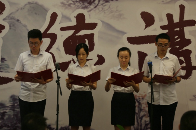 活動(dòng)在悠揚(yáng)的旋律中以廉潔自省的形式拉開(kāi)了序幕。大家集中觀看了《將改革進(jìn)行到底之黨的自我革新》專題影片,領(lǐng)略了黨中央全面從嚴(yán)治黨的堅(jiān)定決心,并在道德經(jīng)典傳播員的帶領(lǐng)下,一同品味了清代廉臣孫嘉淦為官做人的八項(xiàng)基本準(zhǔn)則《居官八約》。參加人員現(xiàn)場(chǎng)分享了嚴(yán)守道德操守、堅(jiān)持廉潔自律的感悟,同時(shí)大家在主持人的帶領(lǐng)下做了勤政承諾。最后道德講堂為參加人員送上了精心制作的廉政文化折扇,希望在炎炎夏日中為大家送去清風(fēng),傳播廉政文化。
